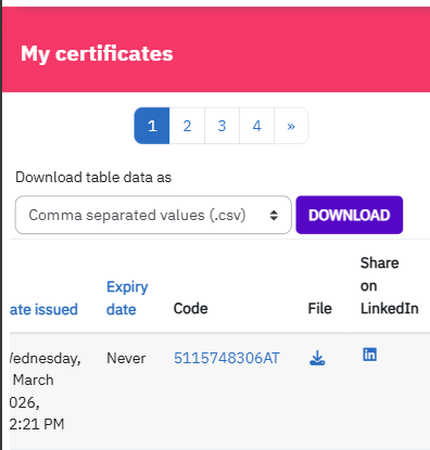 You can share your badges in a CV or on social media platforms such as LinkedIn, as well as print the badge document on paper or save as a PDF.