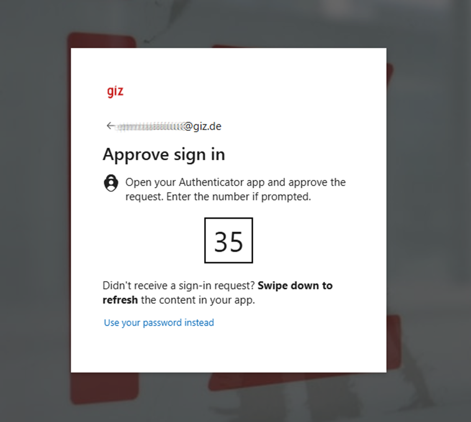 Follow GIZ's Two factor authentication process to approve the login