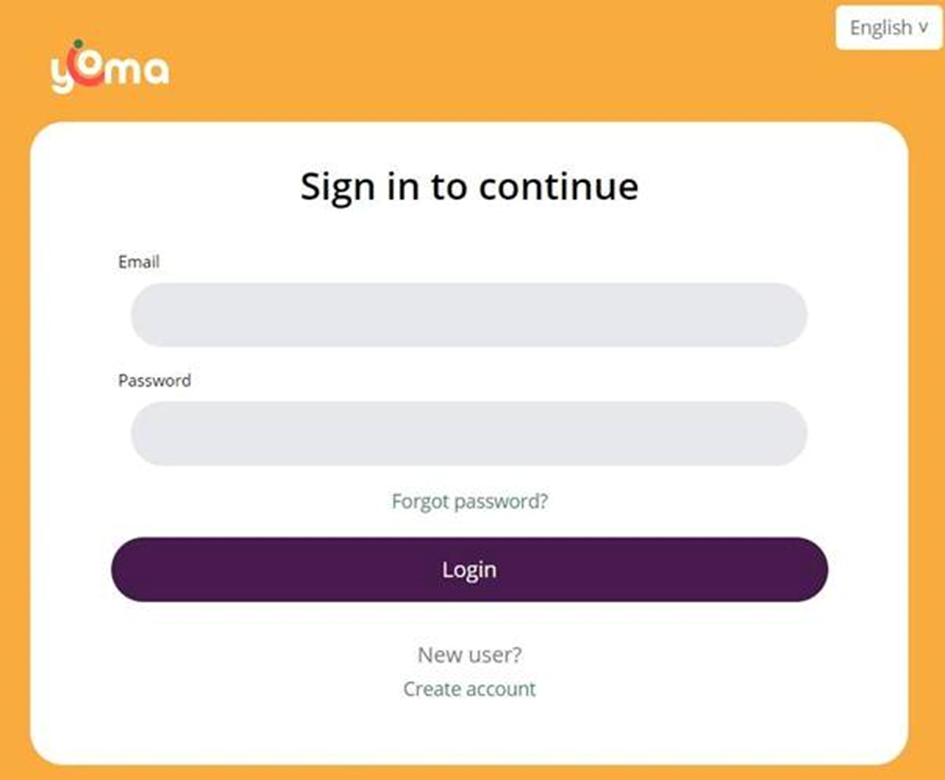 If you have clicked the “YOMA” button, you will be redirected to the YOMA log in page. Enter your email address and password connected to YOMA here and click “Login”.