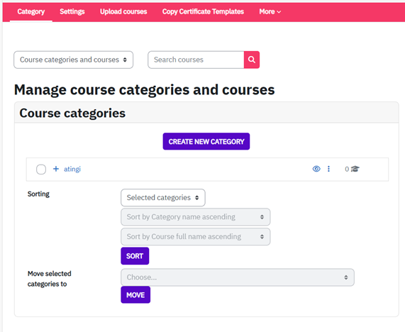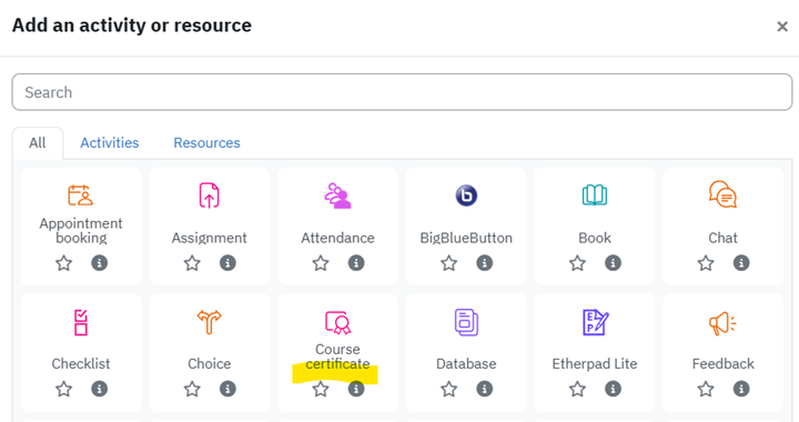Precondition: To select from available certificates in your category, you must be assigned as a Category Manager/Category Assistant or as a Course Manager.
