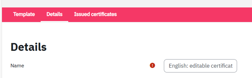 - You can rename the title of the certificate by clicking on “Details”. Please consider that learners will see the certificate title when they share their certificate on LinkedIn. The title will be visible in the learner profile and should be phrased in a user-friendly way.