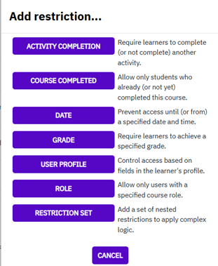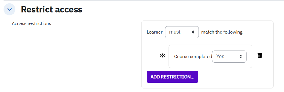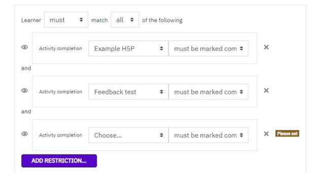 Alternatively, you can also select the “Activity completion” restriction.