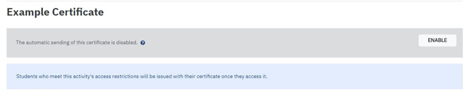 We have prepared different language versions to choose from (English, French, Spanish). Those certificates are already complete setup, and you only need to choose one and add them to your course as an activity.