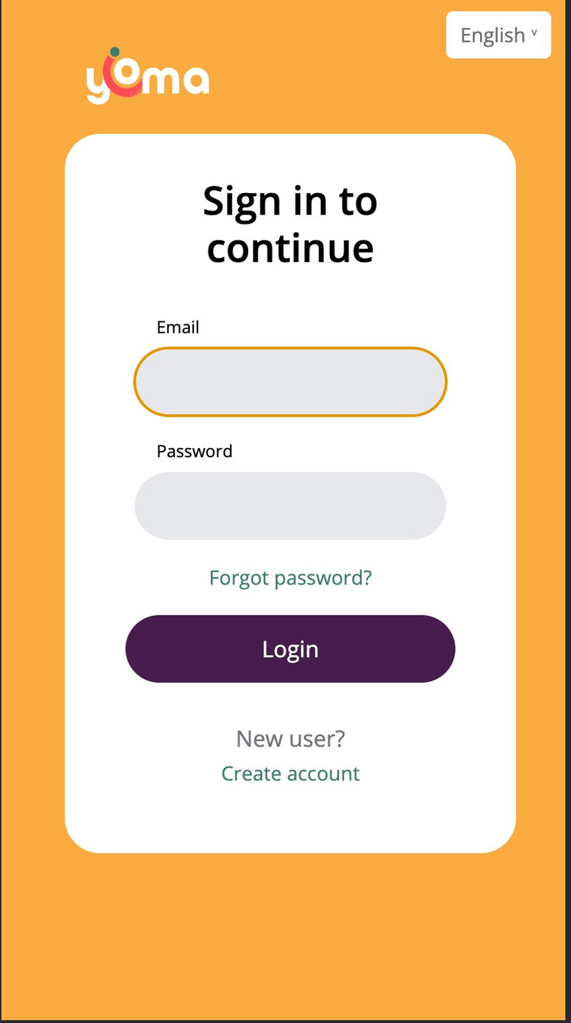 Si has hecho clic en el botón "YOMA", serás redirigido o redirigida a la página de inicio de sesión de YOMA. Ingresa aquí tu dirección de correo electrónico y contraseña vinculada a YOMA y haz clic en "Login".