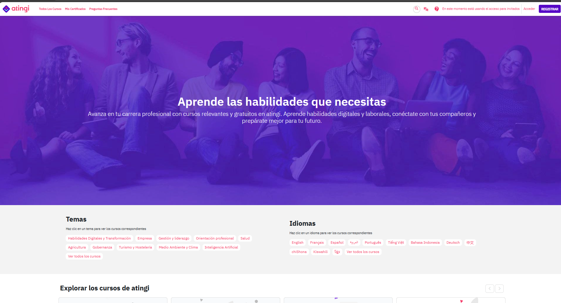 Alternativamente, puedes visitar https://www.atingi.org/, hacer clic en "Iniciar sesión" y elegir "Iniciar sesión como invitado".