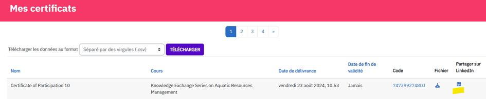 - Sélectionnez « Certificat de cours »