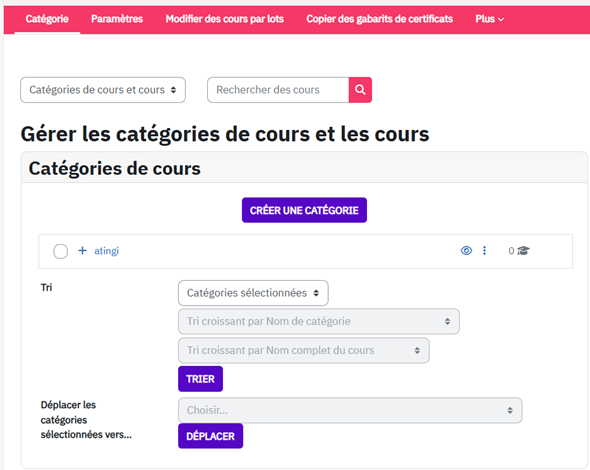 Conditions préalables : vous devez être assigné en tant que Gestionnaire de catégorie ou Assistant de catégorie dans votre espace de cours (« catégorie »).