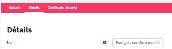 Une fois un certificat délivré, le modèle ne peut plus être modifié.