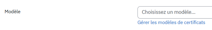 Condition préalable : pour sélectionner des certificats disponibles dans votre catégorie, vous devez être assigné en tant que Gestionnaire de catégorie / Assistant de catégorie ou Gestionnaire de cours.