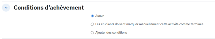 Dans les paramètres d’achèvement de l’activité, sélectionnez : « Aucun »